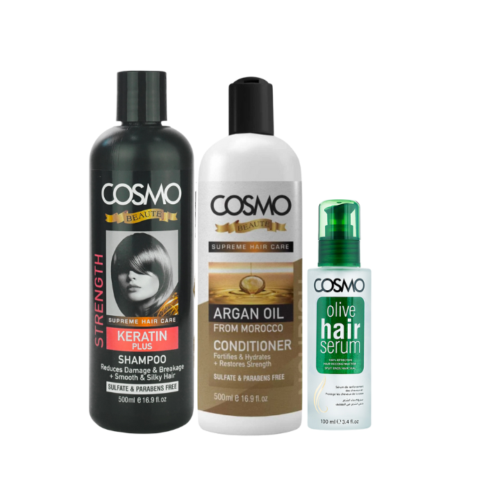 HAIR CARE DELUXE - BEAUTE KERATIN PLUS SHAMPOO 500ML - BEAUTE ARGAN OIL CONDITIONER 500ML - OLIVE HAIR SERUM 100ML