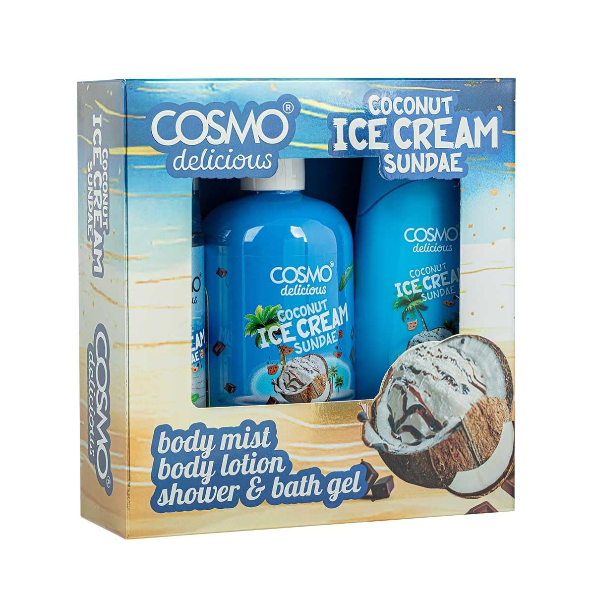 Indulge in the refreshing scent of Cosmo Delicious Coconut Ice Cream Sundae Hand Wash, a 350 ml liquid soap that effectively cleanses your hands while leaving behind a tropical, creamy fragrance. This eye-catching hand wash features a convenient pump dispenser and a beach-inspired design, making it a fun and functional addition to any bathroom or kitchen.